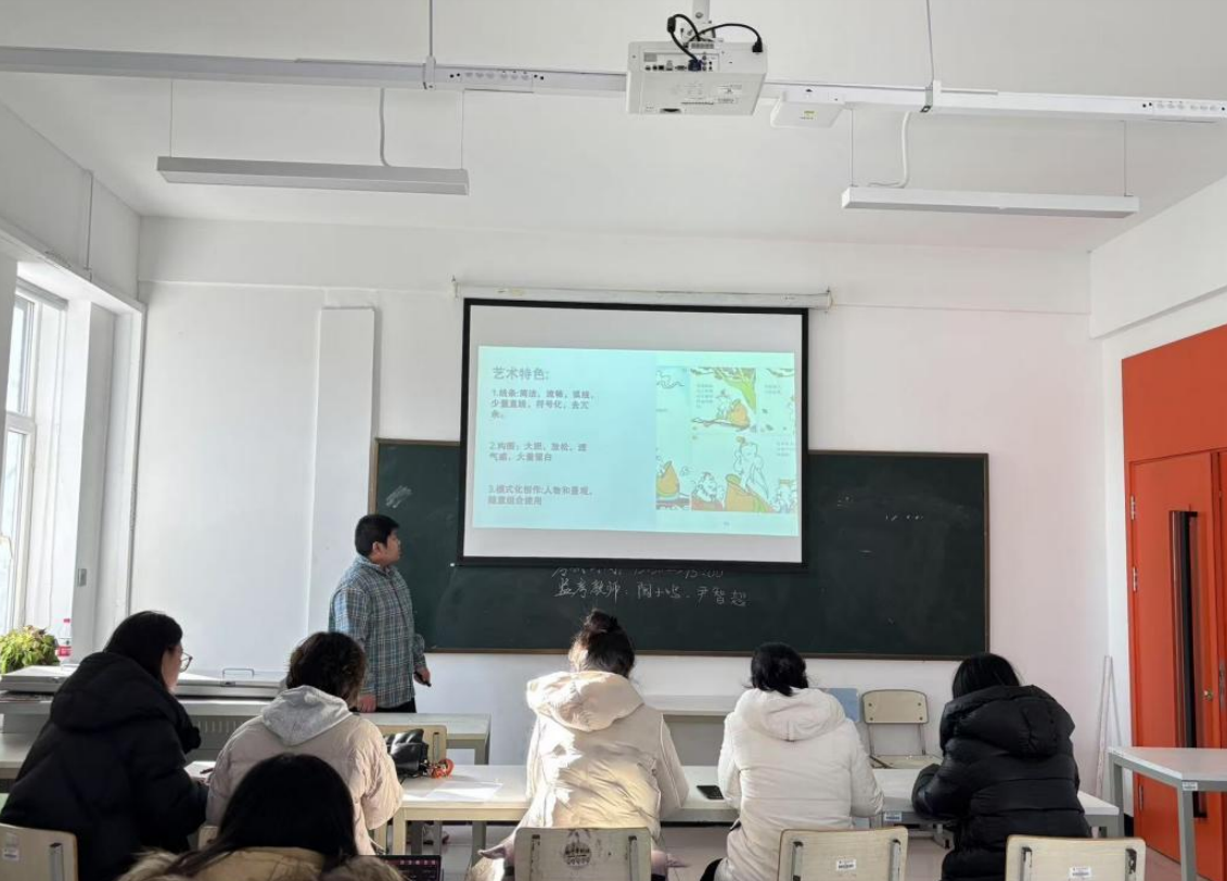 参赛教师围绕学院核心课程,结合学科前沿与行业需求,精心设计教学内容,充分展现青年教师的专业素养与教学创新力。在《漫画版式设计》课程中,王璇老师以“漫画阅读顺序”为主题,通过对比经典日漫与国漫的分镜设计,解析版式布局对叙事张力的影响。臧玉莘老师在《中外漫画史》课程中,以结合历史影像与当代案例,剖析不同文化背景下漫画题材与表现手法的演变。陶子鸣老师在《漫画人物动态表现》课程中,以“多人物圆形构图的动态表现”为主题,深入讲解了如何通过圆形构图增强画面的视觉张力与叙事效果。随后,评委们从课程设计逻辑、课堂互动效果、技术应用创新、思政元素融合四大维度进行评价,并对每位教师的授课表现提出针对性建议。